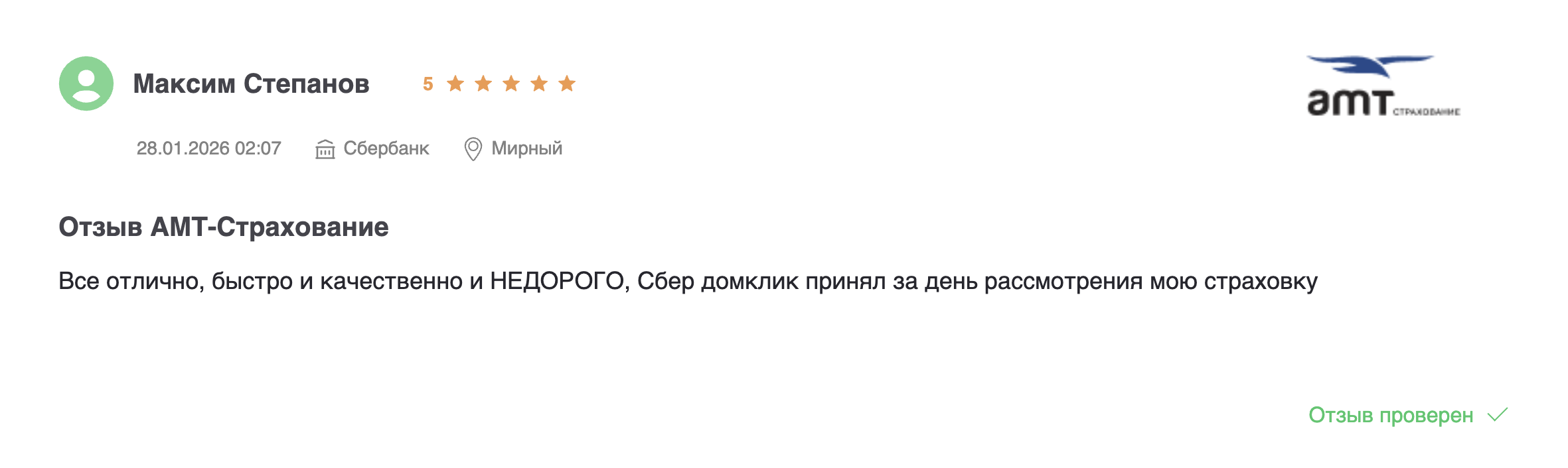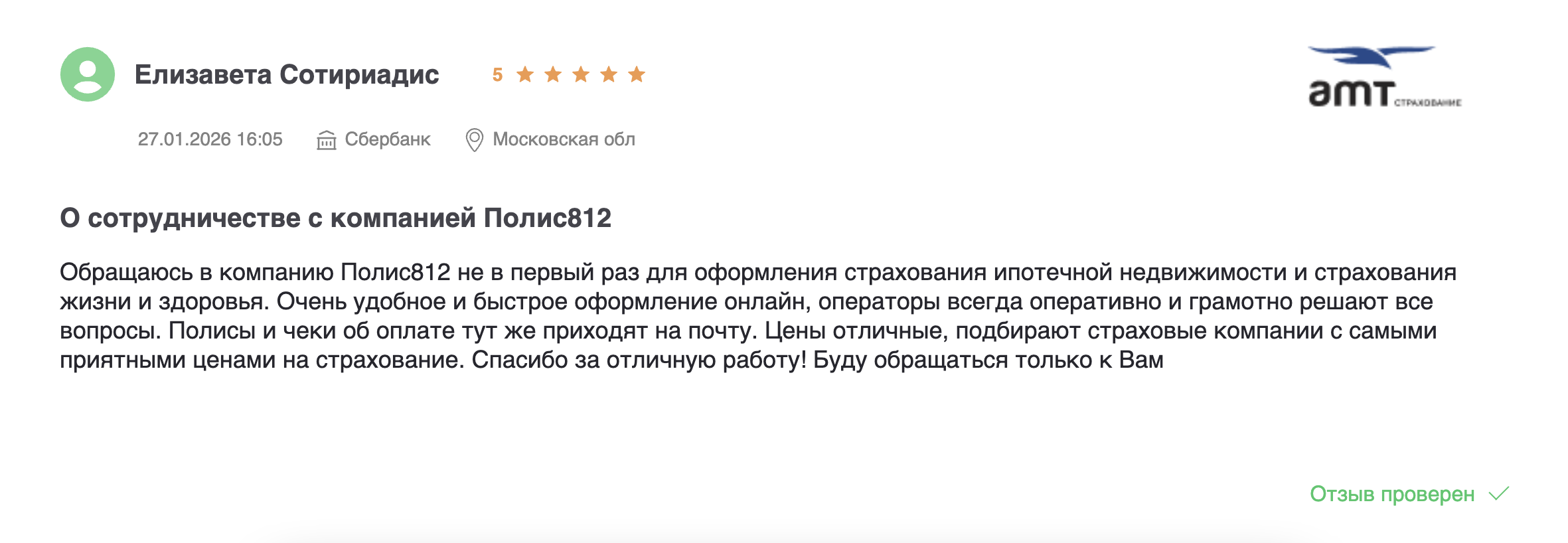 | АМТ Страхование | 5.0 | 960 | 2 300 | ✅ |