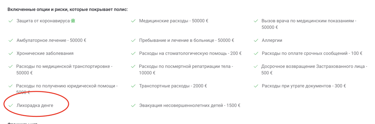 Перед покупкой полиса крайне важно убедиться, что в него входит лечение лихорадок денге и чикунгунья. Эти вирусы могут развиваться стремительно: высокая температура и сильная слабость требуют немедленной медицинской помощи. Оказавшись в чужой стране без страховки, турист рискует потерять время и огромные деньги на лечение.
