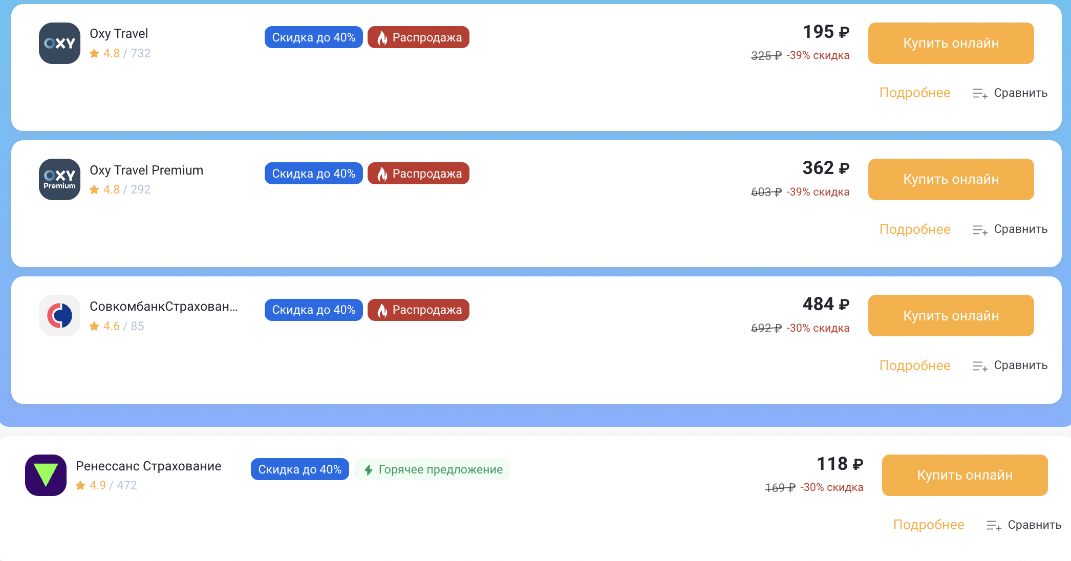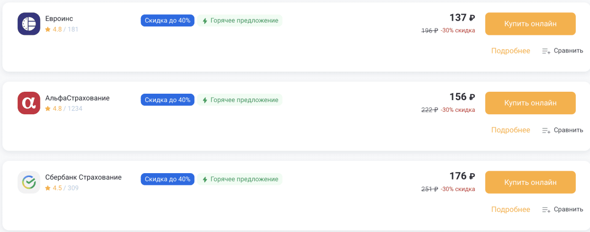 Экономьте на страховании с ПОЛИС812: сравнивайте тарифы на страховки от лучших компаний, получайте дополнительную скидку до 15%, пользуйтесь бонусными баллами для оплаты услуг.