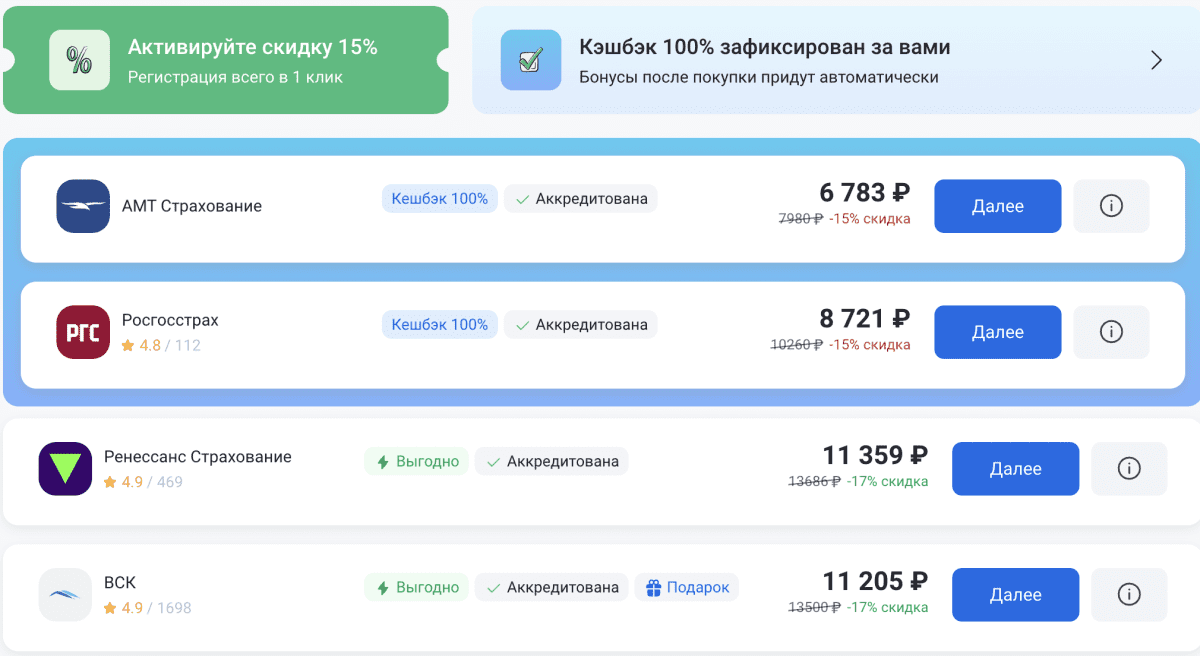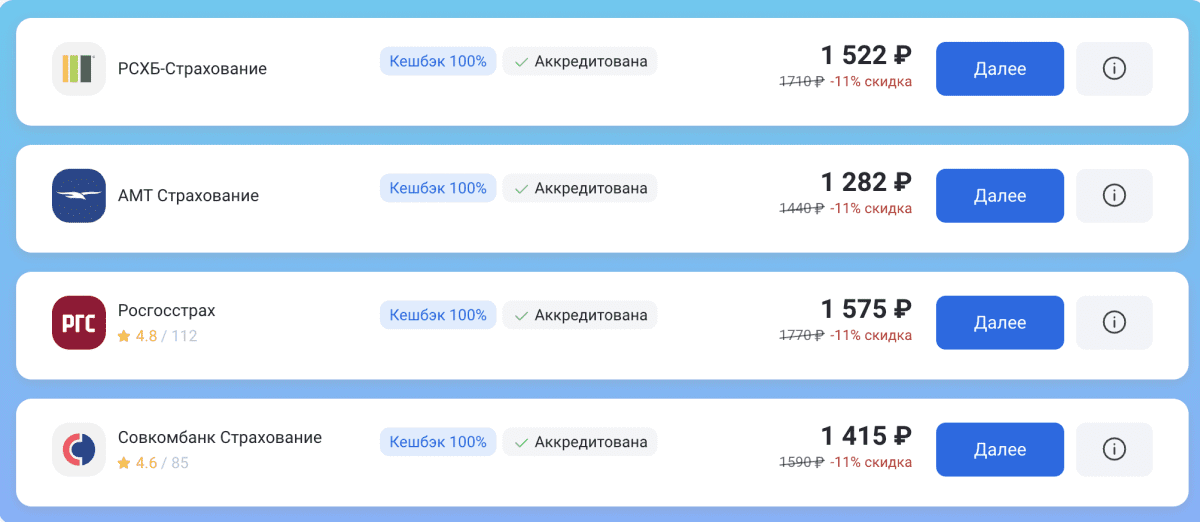 Тут лучшие цены на страхование и только аккредитованные компании.