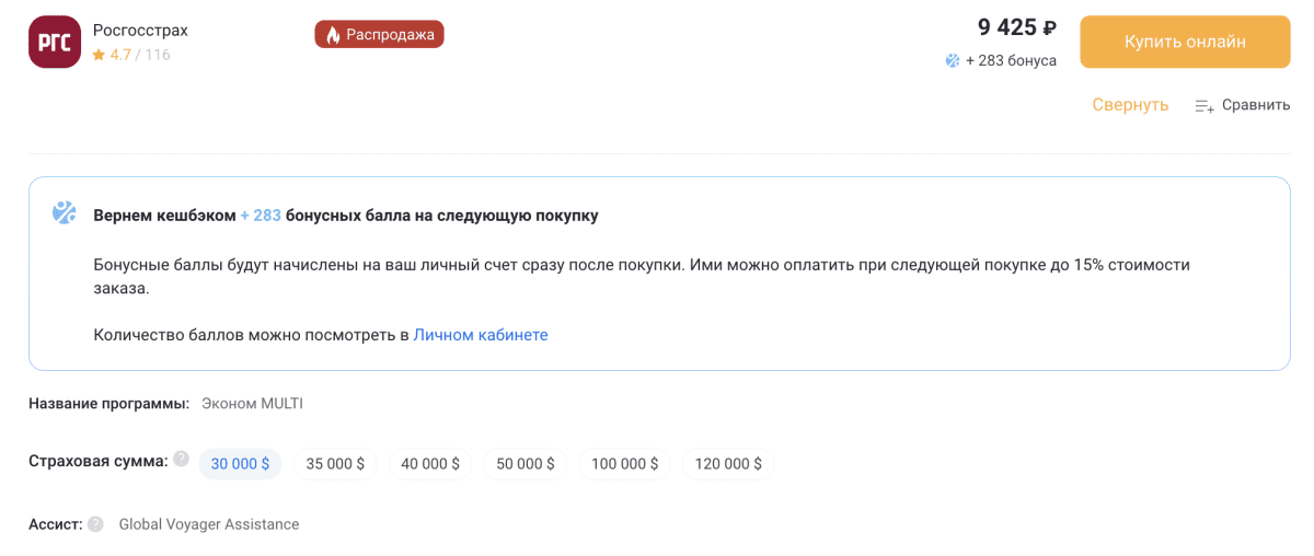 | ВСК | 903 ₽ | Купить | Медицинская помощь, стационар и амбулаторное лечение, страховой ассистанс |