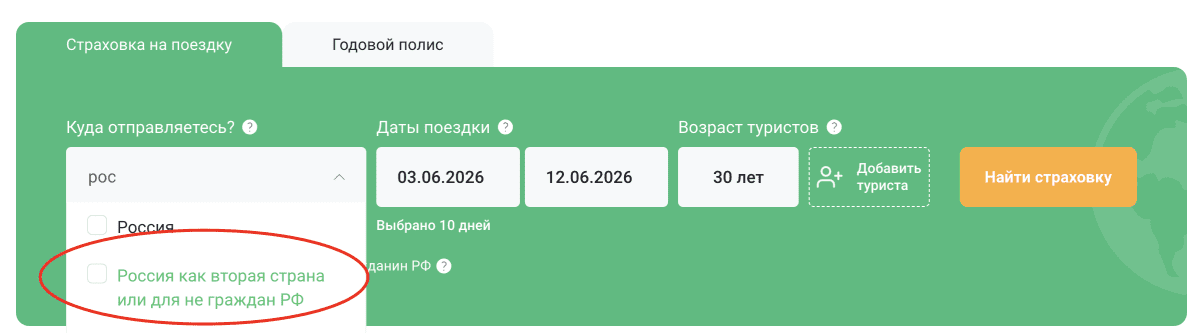 - Укажите страну (Россия как вторая страна или для не граждан РФ), даты поездки (если точные даты неизвестны, укажите самые ближайшие сроки поездки), возраст туристов.