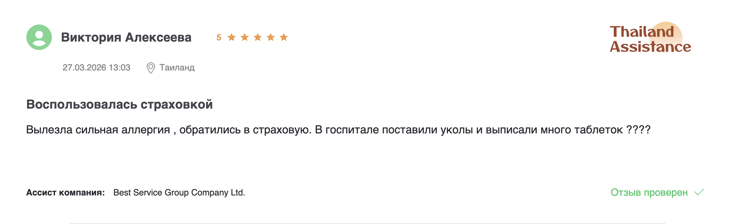 Отзыв о туристической страховке Thailand Assistants в Таиланде: экстренная помощь, госпитализация и поддержка переводчика.