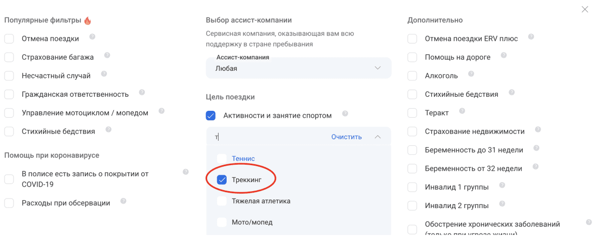 Пример стоимости страховки для треккинга