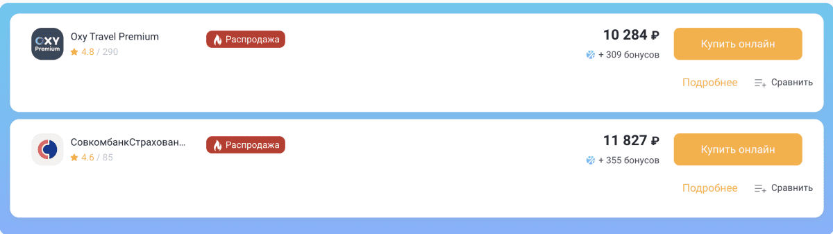- Страховая сумма — от 50 000 до 100 000 $.