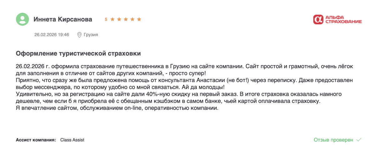 Отзывы наших туристов на страховку в Грузию
