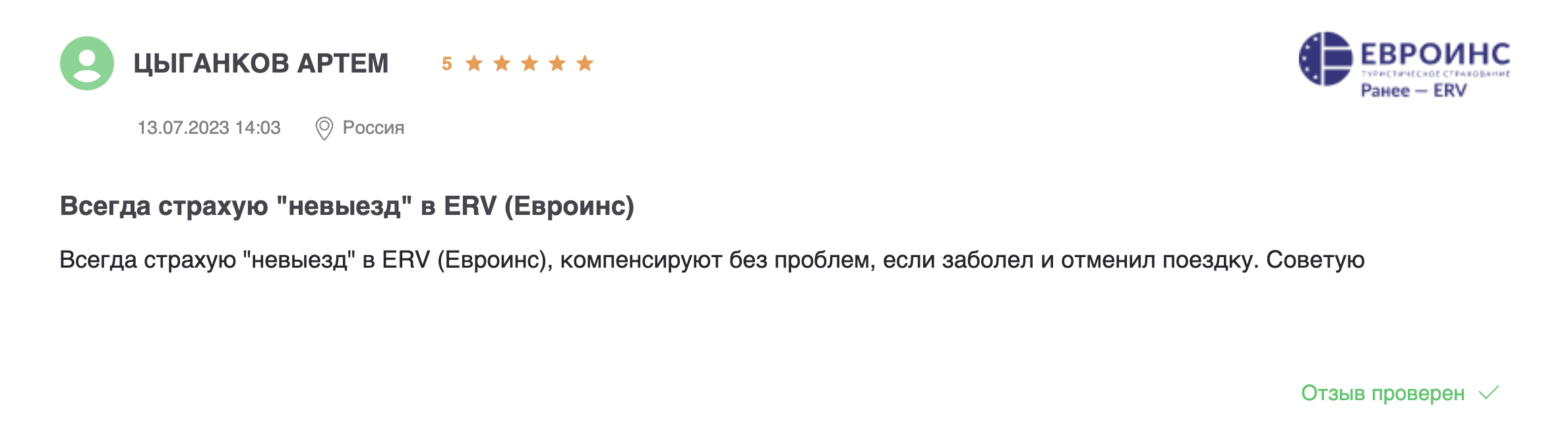 «Всегда страхую «невыезд» в ЕRV (Евроинс), компенсируют без проблем, если заболел и отменил поездку. Советую»