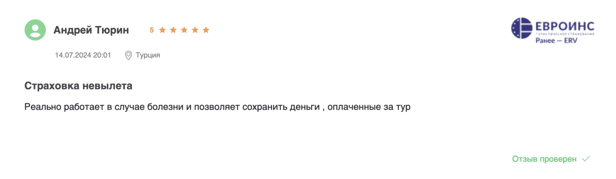 «Реально работает в случае болезни и позволяет сохранить деньги, оплаченные за тур.»
