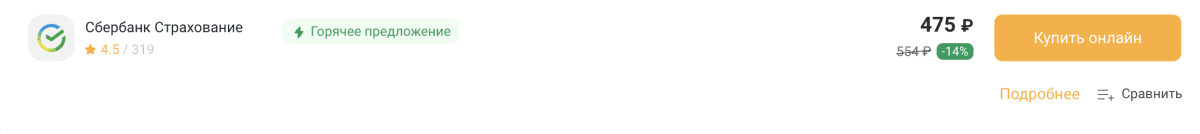 | ПАРИ | Горячее предложение | 240 | Самая недорогая страховка, покрывает базовые риски |