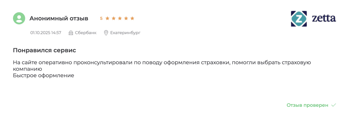 Зетта Страхование | 1 238 | ✓ Аккредитована | Кешбэк, надежная компания |