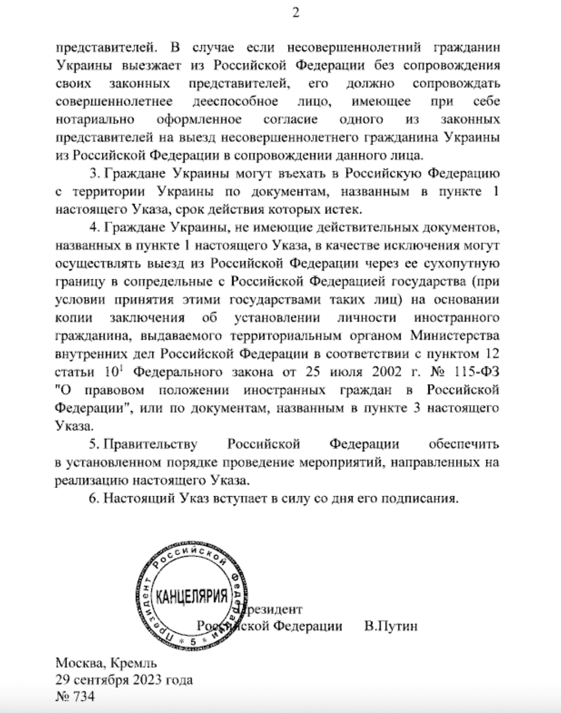 Новый указ о порядке въезда в РФ граждан Украины вступил в силу 29 сентября.
